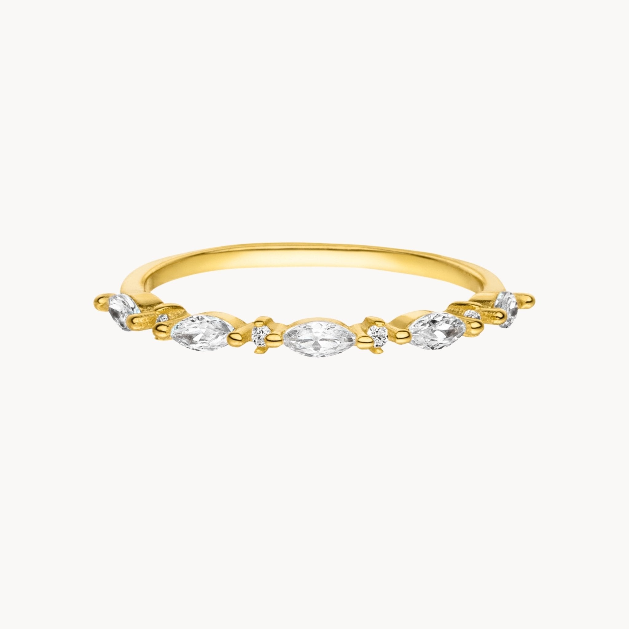 Gefertigt aus 925er Sterling Silber bietet der Ring eine stabile Basis. Die 18K Echtgoldlegierung sorgt für einen warmen, edlen Farbton. Die Oberfläche wirkt glatt und gleichmäßig.
