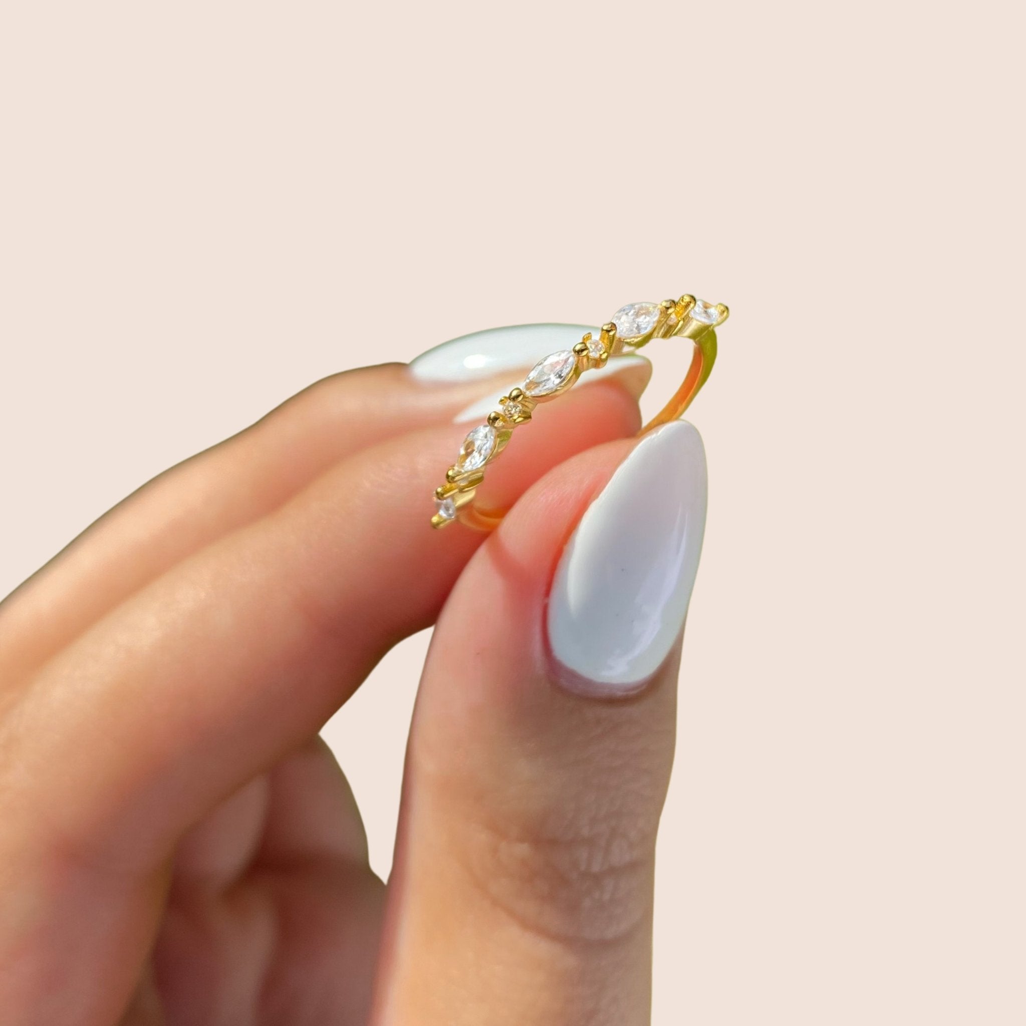 Hier ist das Entscheidende. Das Design wirkt filigran, aber nicht zerbrechlich. Die Steine reflektieren das Licht bei jeder Bewegung. Der Glanz bleibt dezent, aber präsent. Genau so entsteht Eleganz, die nicht laut sein muss.
